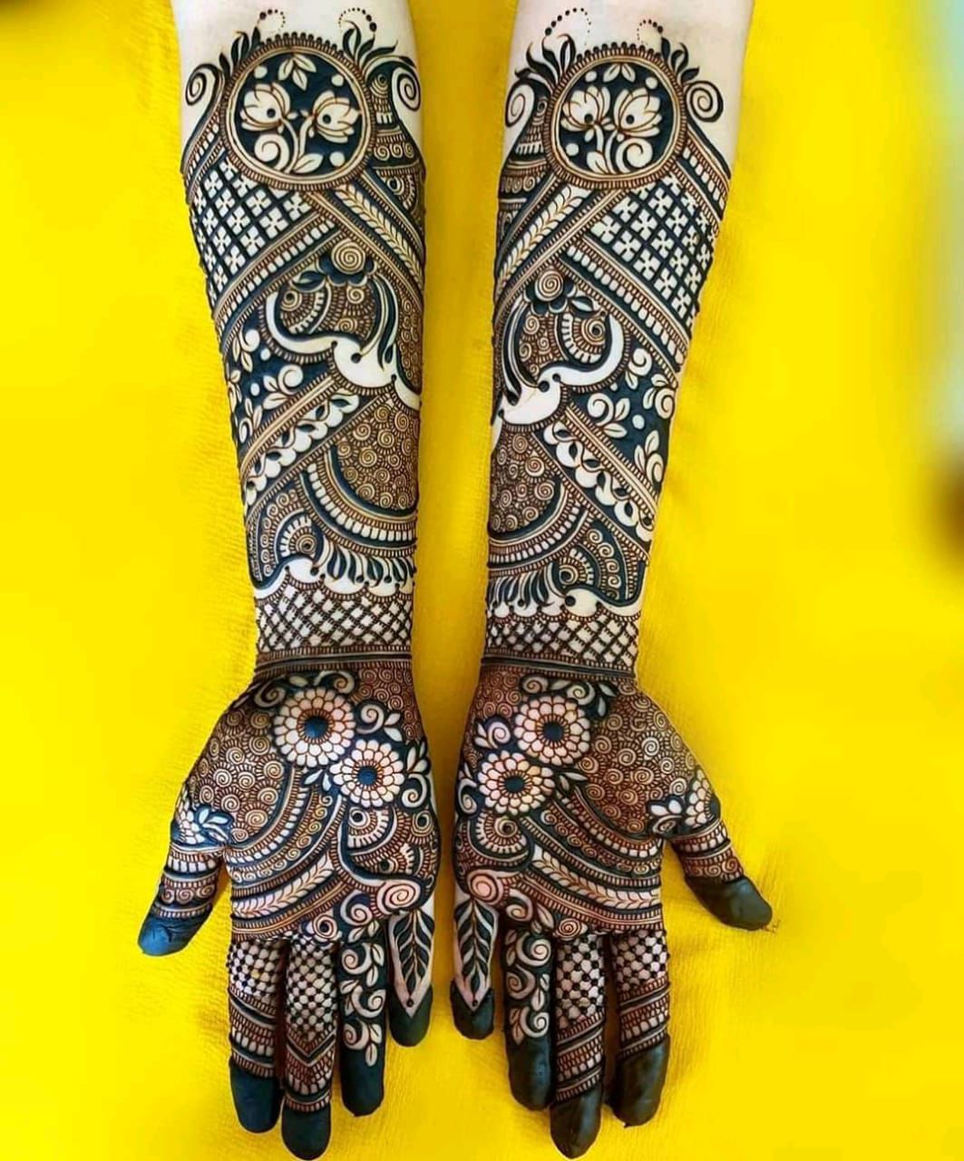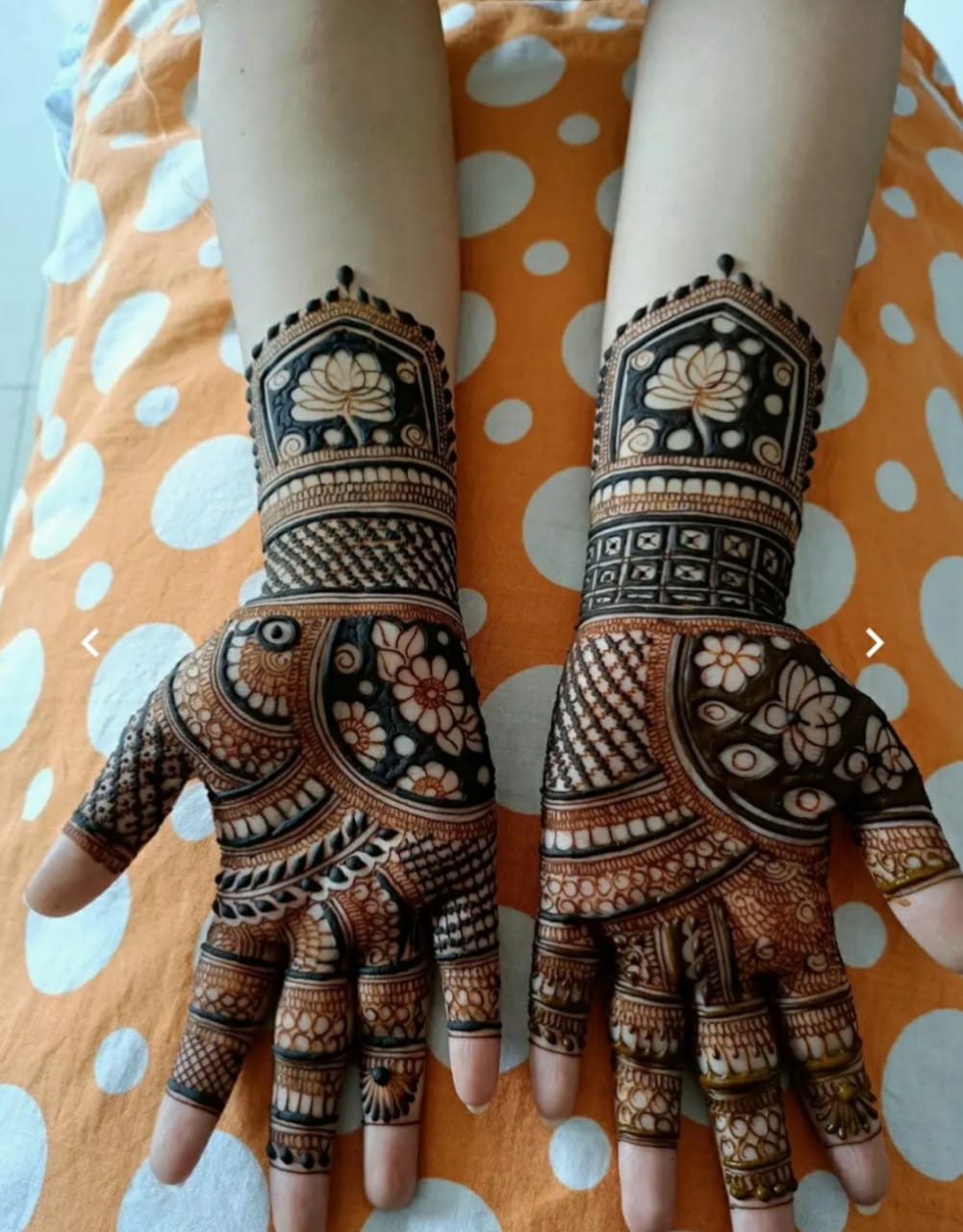 One such style of mehndi that’s trending is called New Madhuban Style mehndi design. The word ‘Madhuban Style’ originated in the india world and means intricate.