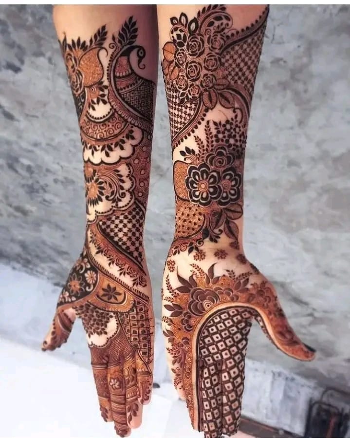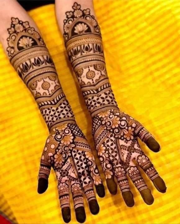 Arabic mehndi involves a mix of floral artwork along with geometric patterns, resulting in gorgeous, bold designs.
